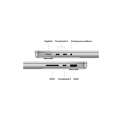 Puertos | 3 × Thunderbolt 4, HDMI, MagSafe 3, SDXC, 3.5 mm |