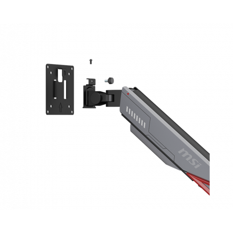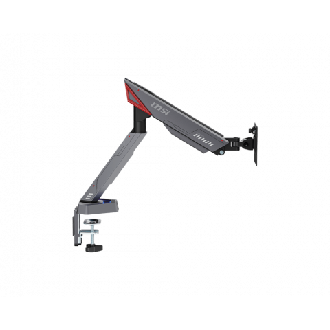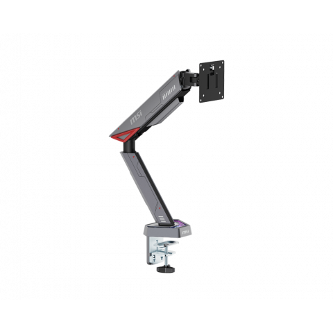 El soporte para monitor MSI MPG MT161R está diseñado para ofrecer máxima flexibilidad y estabilidad en la instalación de pantallas de hasta 45 pulgadas. Con un brazo de resorte, compatibilidad VESA 75x75 y 100x100, y capacidad de ajuste completo (inclinación, giro, pivote y extensión), este accesorio permite una experiencia ergonómica superior. Su sistema de instalación mediante abrazadera o grommet asegura compatibilidad con diferentes tipos de escritorios, mientras que su capacidad de carga soporta monitores planos de hasta 16 kg y curvos de hasta 13 kg.