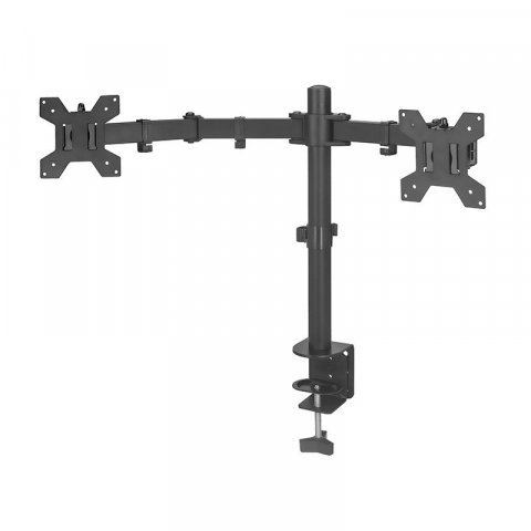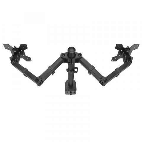 El soporte de escritorio Getttech Full Motion está diseñado para optimizar el espacio de trabajo y mejorar la ergonomía al permitir la instalación de dos monitores de manera flexible. Fabricado en acero laminado en frío, ofrece gran resistencia y estabilidad, además de múltiples ajustes de inclinación, giro y rotación para adaptarse a diferentes necesidades de visualización. Su sistema de gestión de cables mantiene el área ordenada y libre de enredos.