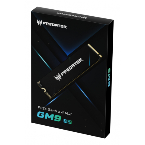 Acer Predator GM9 SSD 2TB M.2 NVMe PCIe Gen5, lectura 14,500 MB/s, escritura 10,000 MB/s, peso 17 g.