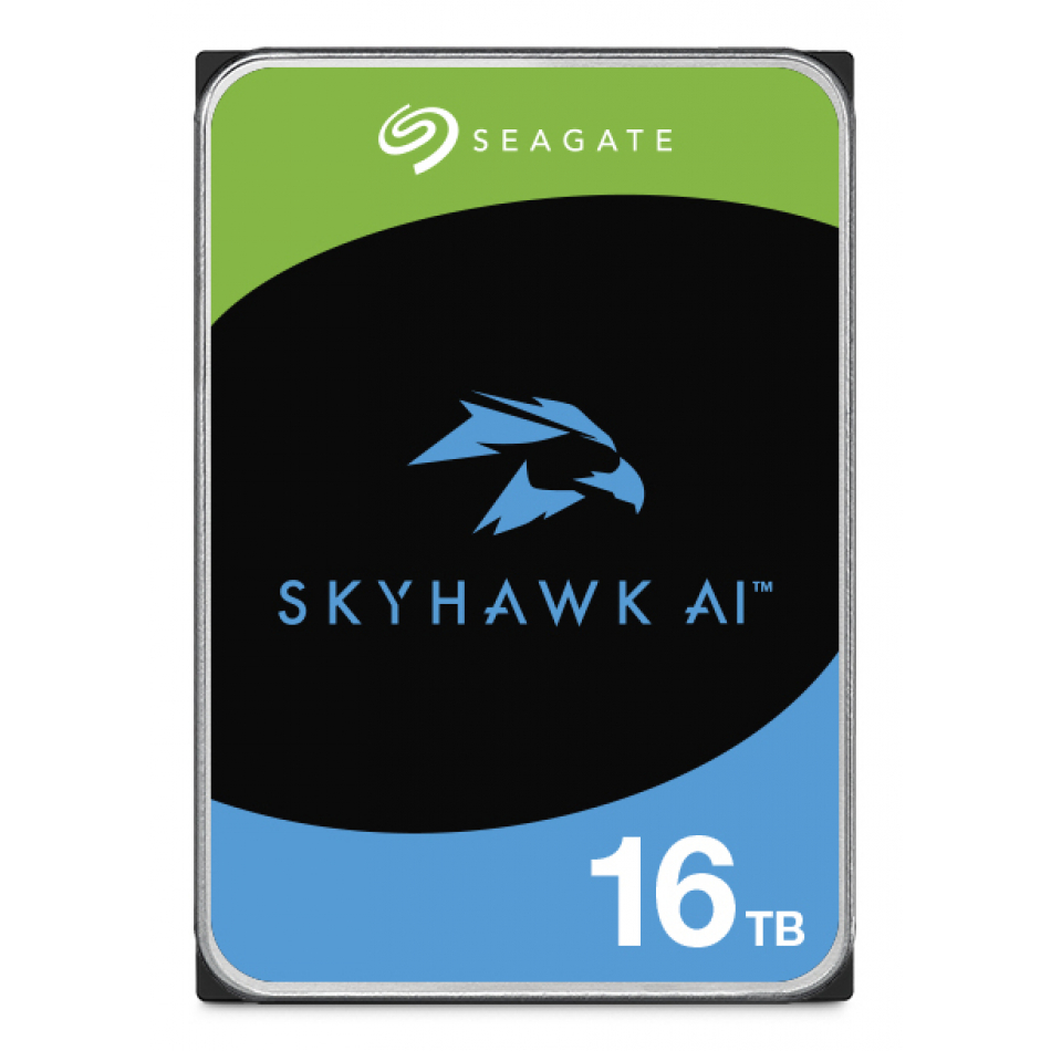 Disco duro Seagate SkyHawk AI 16TB ST16000VE004 , 3.5", SATA 6 Gb/s, 256 MB, 7200 RPM, optimizado para videovigilancia 24/7 con soporte de hasta 64 cámaras HD.