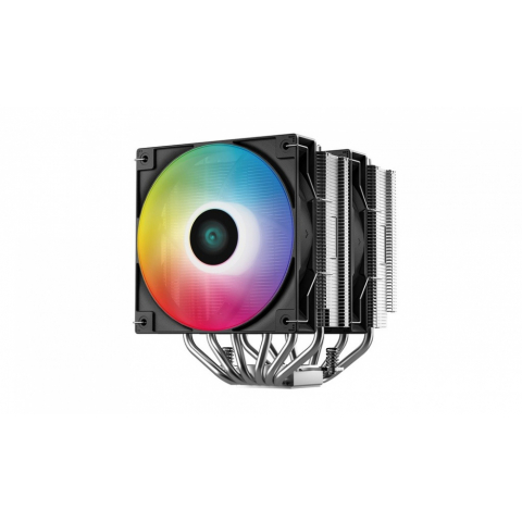 Disipador de CPU de doble torre Deepcool AG620 ARGB con 6 heatpipes, dos ventiladores PWM de 120mm y capacidad de disipación de 260W TDP.