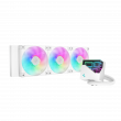Sistema AIO blanco con radiador de 360 mm, bomba optimizada y ventiladores ARGB. Ideal para builds exigentes con estética moderna y rendimiento térmico confiable.
