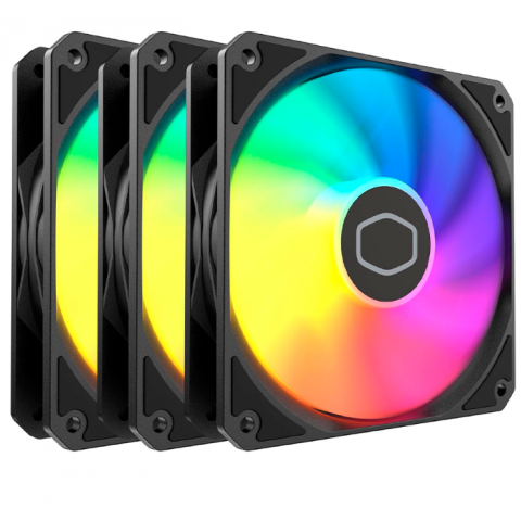 Kit de 3 ventiladores Cooler Master MF120 LITE de 120mm con control PWM, iluminación ARGB sincronizable y un controlador ARGB incluido.