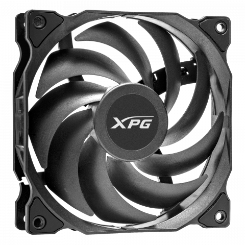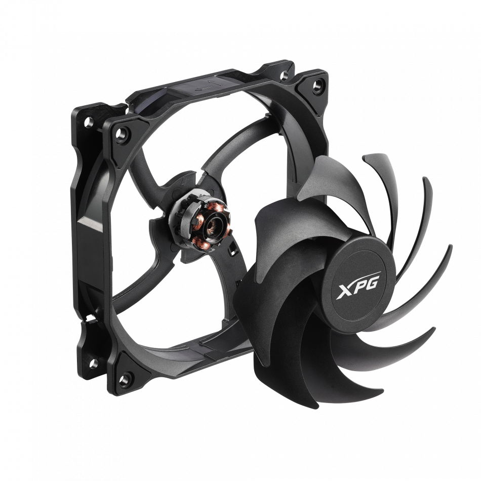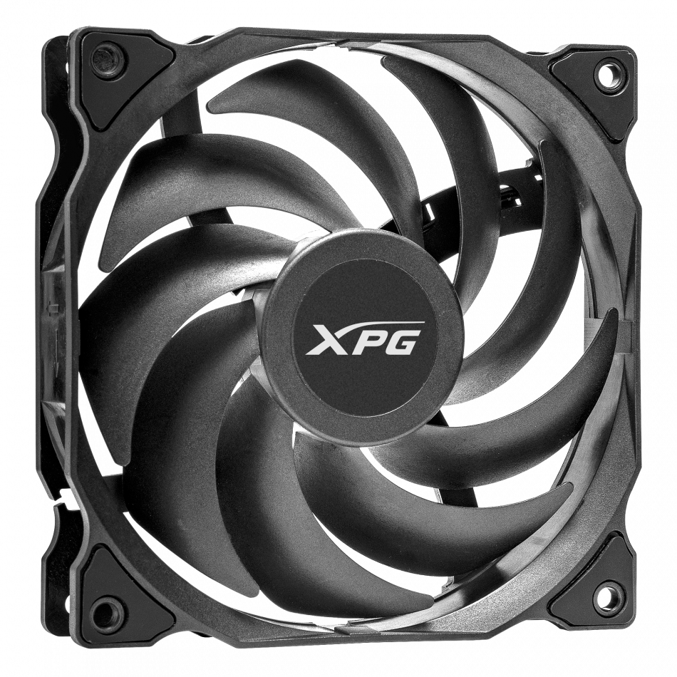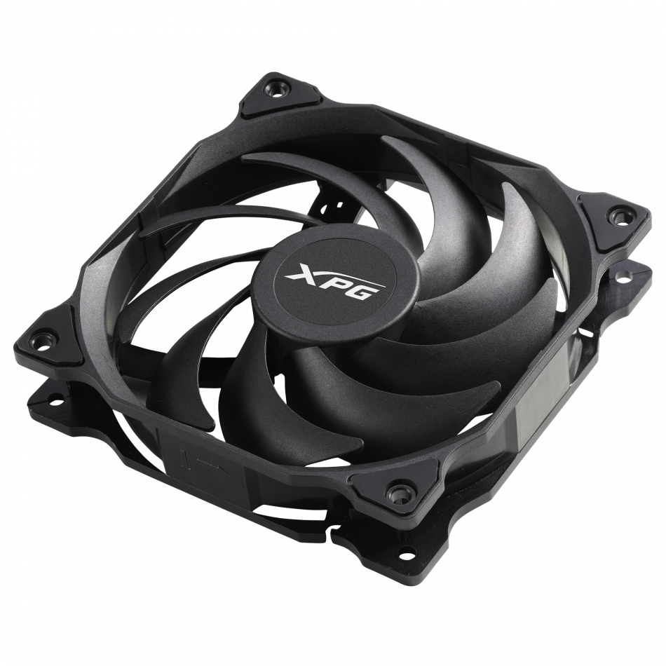 Ventilador XPG VENTO 120 negro de 120mm, diseñado para un alto flujo de aire (45.3 CFM) con operación silenciosa (23 dBA) gracias a su rodamiento de rifle.