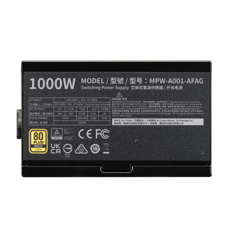 Fuente de poder Cooler Master Elite Gold 1000 FM 1000W , full modular, certificada 80 PLUS Gold , ideal para PCs gaming y profesionales de alto rendimiento.