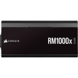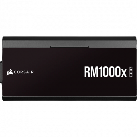 Corsair RM1000x Shift, fuente ATX 1000W modular, 80 PLUS Gold, PCIe 5.0, interfaz lateral, ventilador FDB con Zero RPM Mode, peso 2 kg.