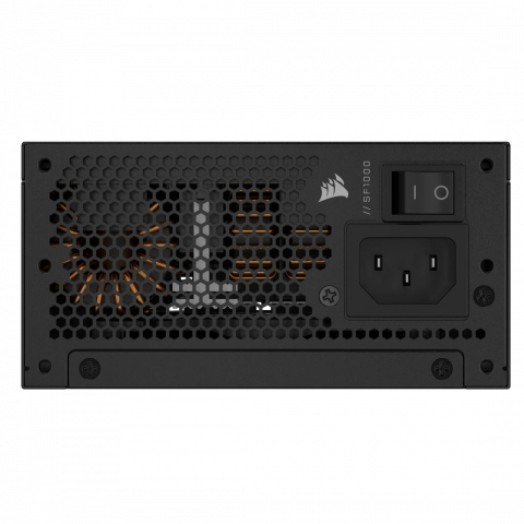 Corsair SF1000, fuente SFX 1000W modular, 80 PLUS Platinum, PCIe 5.0, ventilador FDB, peso 1.1 kg.