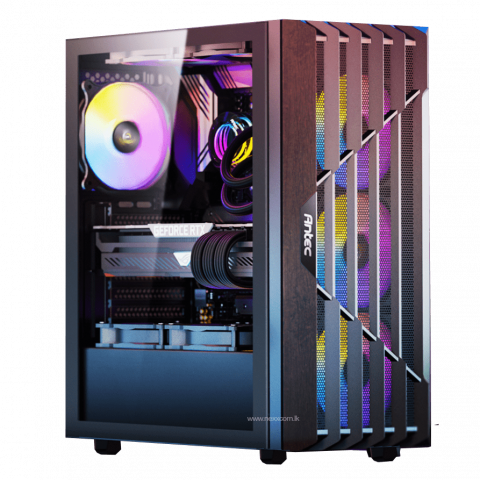 GABINETE ANTEC AX63 WOOD ARGB – MEDIA TORRE ATX CON VIDRIO Y MADERA, 4 VENTILADORES, USB-C, NEGRO