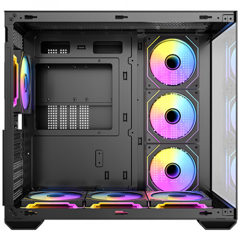 El Antec CX Mirror Mid Tower es un gabinete de torre mediana con panel lateral de vidrio templado panorámico , diseñado para ofrecer flujo de aire eficiente, estética moderna y compatibilidad con hardware de alto rendimiento . Incluye 3 ventiladores ARGB preinstalados , con capacidad para instalar hasta 7 en total, además de soporte para radiadores de 360 mm y espacio para tarjetas gráficas de gran tamaño.