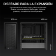 Gabinete semitorre modular con sistema InfiniRail™, ventiladores RS120 y soporte para placas back-connect, ideal para builds avanzadas y personalizables.