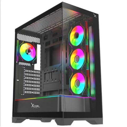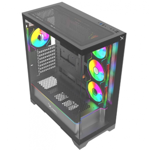 Xzeal XZ160 XZGAEX1B, gabinete Full Tower gamer, soporta EATX/ATX/M-ATX/M-ITX, 4 ventiladores ARGB, cristal templado, puertos USB-C/USB3.0, negro.