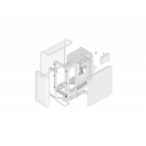 Gabinete HYTE X50 Air Pitch White , ATX con panel frontal mallado y lateral de vidrio templado, soporte para GPUs grandes y refrigeración líquida avanzada.