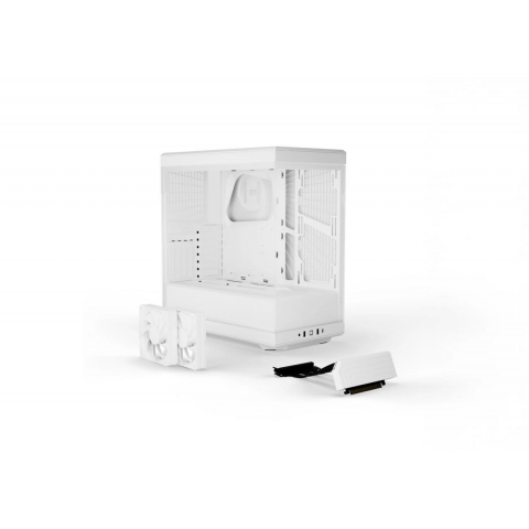 El HYTE Y40 White Edition es un gabinete tipo Media Torre ATX con diseño envolvente y estética moderna en color blanco. Su estructura incluye vidrio templado en dos lados (frontal y lateral), lo que permite una vista panorámica del hardware. Está diseñado para configuraciones limpias y exhibibles, con montaje vertical de GPU gracias al riser PCIe 4.0 incluido , y compatibilidad con placas base ATX, Micro-ATX y Mini-ITX .