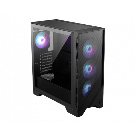 Gabinete MSI MAG FORGE 321R AIRFLOW media torre ATX con panel de malla, cristal templado, 4 ventiladores ARGB, USB-C 20Gbps y soporte para refrigeración líquida. Ideal para builds gamer con alto flujo de aire.