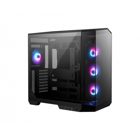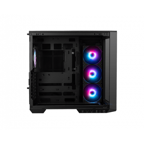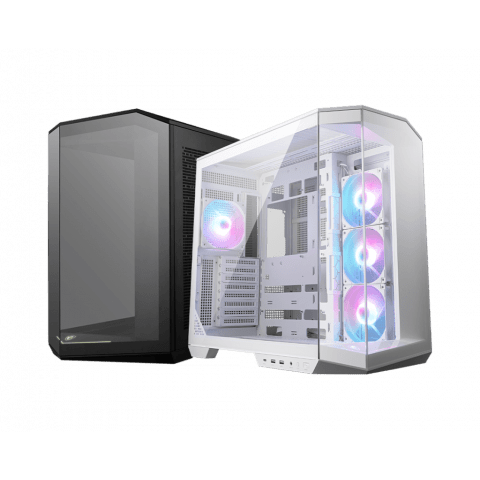 Gabinete premium con diseño panorámico, ideal para builds ARGB con gestión de cables optimizada, refrigeración avanzada y conectividad moderna.
