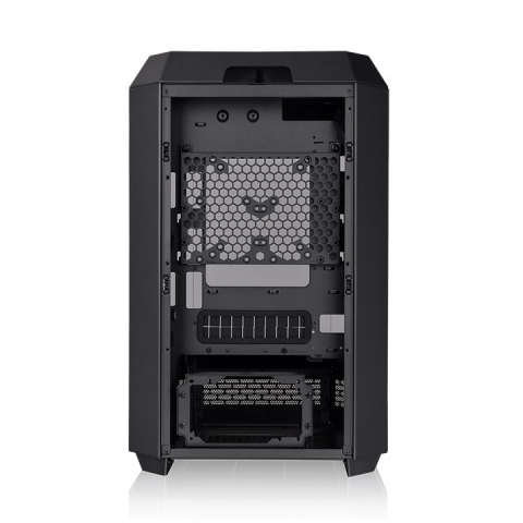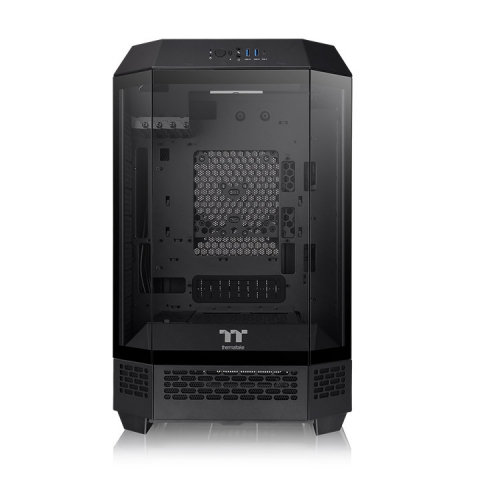 El Thermaltake The Tower 300 es un gabinete tipo Micro Tower con diseño vertical panorámico, ideal para builds compactas con alto impacto visual. Su estructura permite una presentación tipo vitrina gracias a su ventana frontal de cristal templado, mientras que su formato vertical optimiza el flujo de aire y el aprovechamiento del espacio. Incluye dos ventiladores preinstalados CT140 de 140 mm, soporte para radiadores de hasta 360 mm y compatibilidad con placas madre Micro-ATX y Mini-ITX.