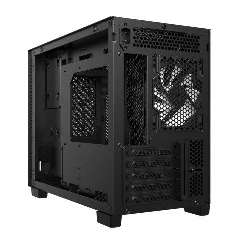 Gabinete XPG Valor Air Nano , compacto Micro-ATX/Mini-ITX, color negro, con un ventilador ARGB de 120 mm incluido, soporte para GPUs grandes y conectividad moderna.