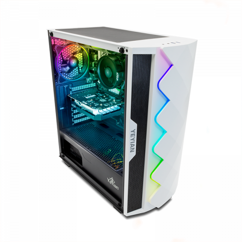 El Yeyian Abyss 2500 White es un gabinete gamer tipo Mid Tower con diseño elegante en color blanco, compatible con placas base ATX y Micro-ATX . Su estructura metálica con panel lateral de vidrio templado permite exhibir componentes internos, mientras que su sistema de iluminación ARGB y ventilación optimizada lo hacen ideal para builds llamativos y funcionales. Incluye ventiladores preinstalados y espacio para tarjetas gráficas de gran tamaño.