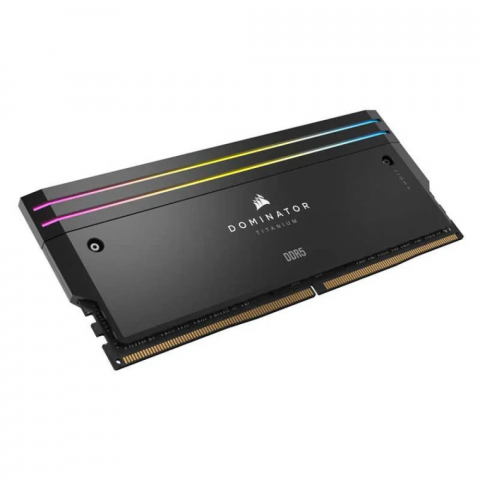 Kit de memoria Corsair DOMINATOR TITANIUM RGB DDR5 de 64GB (2×32GB), velocidad de 6600MHz y latencia CL32. Compatible con Intel XMP 3.0, incluye disipador térmico de aluminio forjado en color negro y 11 zonas de iluminación RGB direccionables por módulo. Tecnología DHX patentada para enfriamiento eficiente, ECC en chip para mayor estabilidad y diseño modular con barra superior intercambiable. Ideal para builds entusiastas, estaciones de trabajo y gaming extremo. Garantía limitada de por vida.
