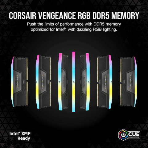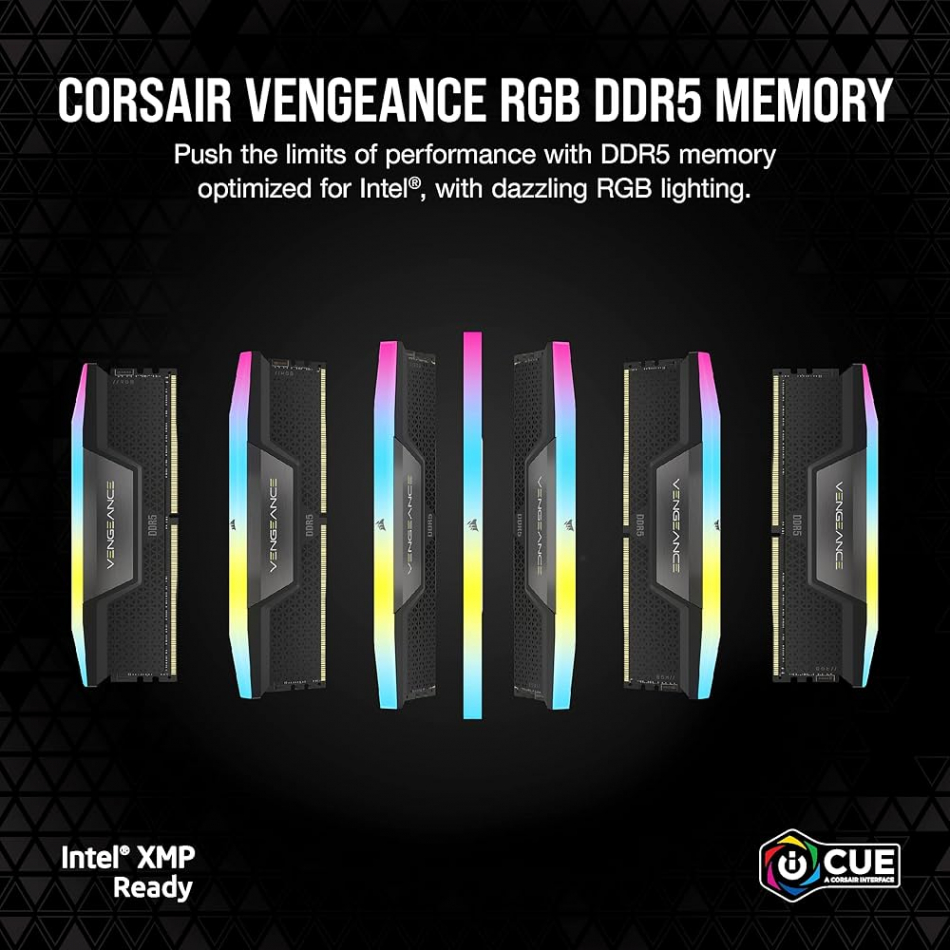 Memoria RAM Corsair Vengeance RGB DDR5 , kit 2 × 8 GB, 5200 MT/s, CL40, voltaje 1.25V, disipador negro, iluminación RGB compatible con iCUE.