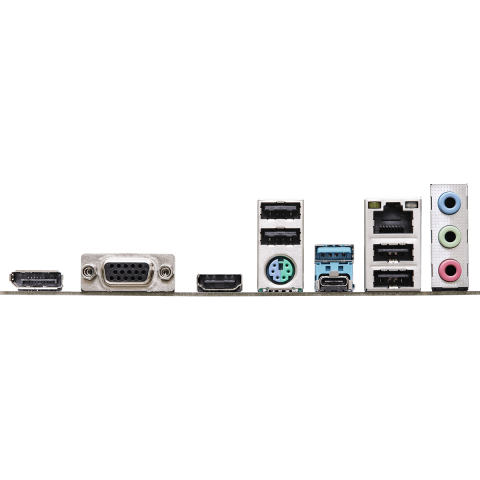 | Puertos traseros | 1 × PS/2, 1 × VGA, 1 × HDMI, 1 × DP, 1 × USB 3.2 Gen1, 1 × USB 3.2 Tipo C, 4 × USB 2.0, LAN, audio |
