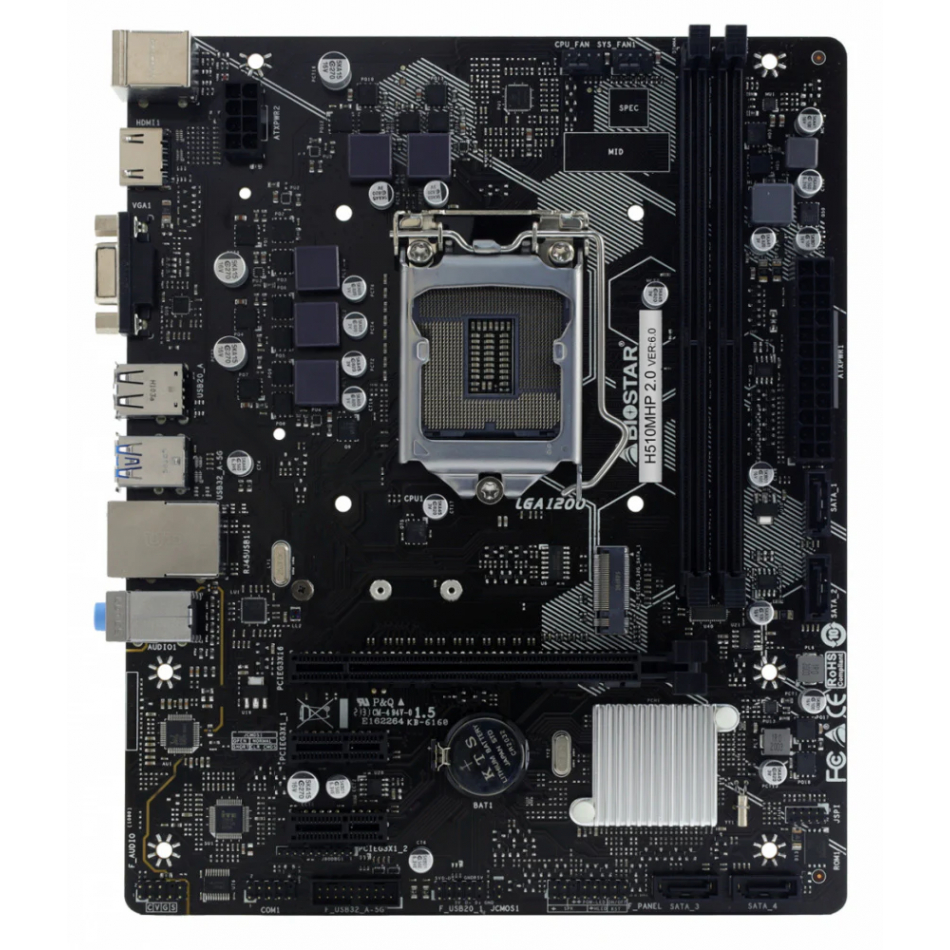 MOTHERBOARD BIOSTAR H510MHP – INTEL LGA1200, DDR4 3200, M.2 PCIE 4.0, HDMI/VGA/DVI, MICRO ATX