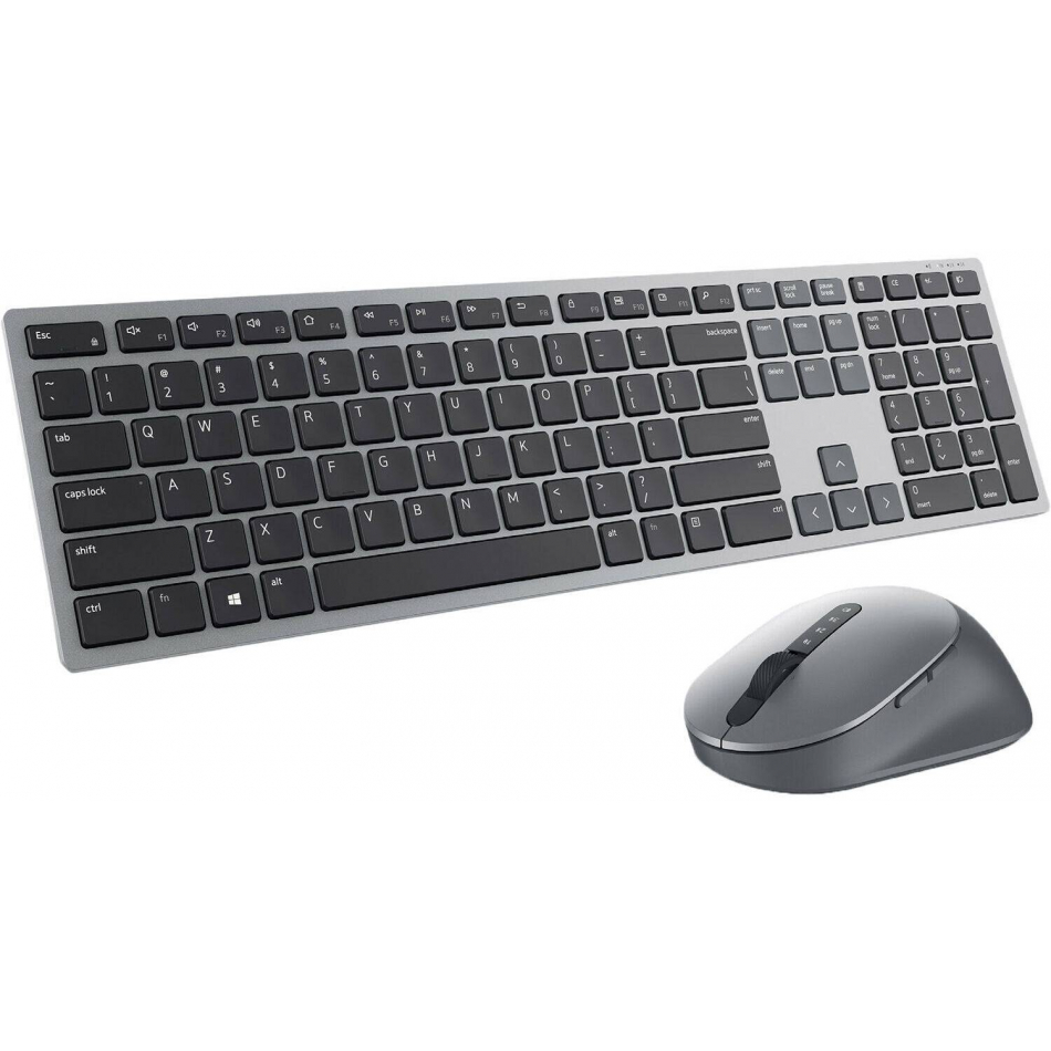 Este combo de teclado y mouse de primera calidad está diseñado para una multitarea fluida y una productividad mejorada, permitiéndote trabajar sin problemas en tres dispositivos. El teclado de tamaño completo cuenta con un diseño elegante y un teclado numérico, mientras que el mouse esculpido se adapta cómodamente a la mano. La tecnología de modo de emparejamiento dual te permite conectarte de forma instantánea a través de RF de 2.4 GHz o Bluetooth 5.0. Las patas de inclinación ajustables del teclado ofrecen el ángulo de escritura ideal, y tanto el teclado como el mouse están equipados con teclas y botones de acceso directo programables a través del software Dell Peripheral Manager.