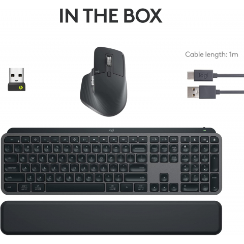 KIT TECLADO Y MOUSE LOGITECH MX KEYS COMBO FOR BUSINESS GEN 2 (920-010924) INALÁMBRICO GRAFITO CON TECNOLOGÍA LOGI BOLT, COMPATIBILIDAD MULTIPLATAFORMA, TECLAS SILENCIOSAS, RETROILUMINACIÓN INTELIGENTE Y MOUSE MX MASTER 3S DE 8000 DPI