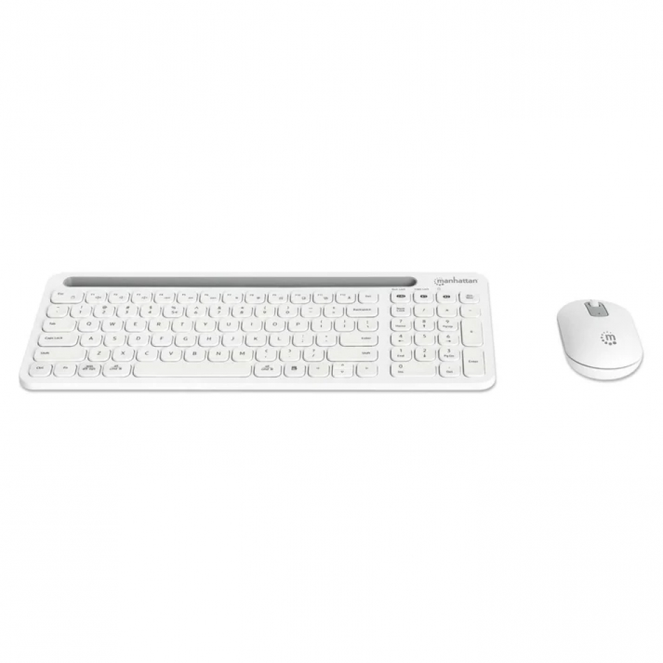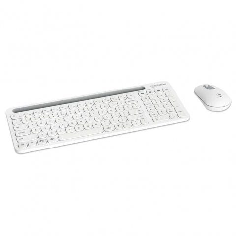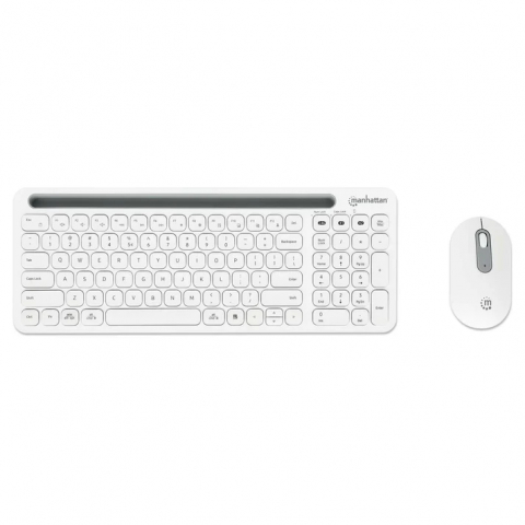 Kit inalámbrico Manhattan con conexión dual (2.4GHz + Bluetooth) para hasta 4 dispositivos, teclado de bajo perfil y mouse ajustable hasta 1200 DPI.