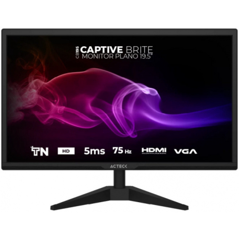 Monitor Acteck AC-939409 , con panel TN de 19.5 pulgadas , resolución 1440x900 WXGA+ , frecuencia de actualización de 75Hz (compatible con 60Hz) , tiempo de respuesta de 5ms , ángulos de visión de 85°/85° , puertos HDMI y VGA , compatible con soportes VESA 75x75 mm , base en forma de V , sistema de seguridad Kensington Lock , fuente de alimentación DC 12V , ideal para productividad y entretenimiento .