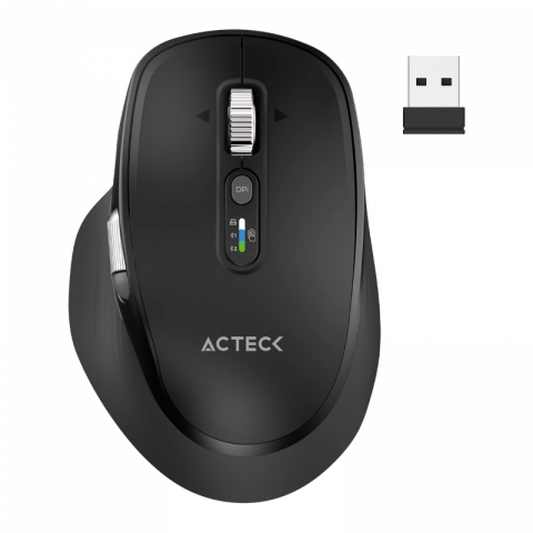 Acteck Virtuos Pro Ultra MI777, mouse inalámbrico dual, 11 botones, scroll metálico, 4800 DPI ajustable, recargable, peso 120 g.