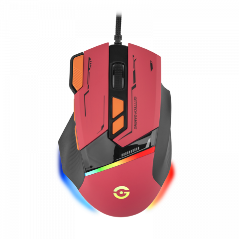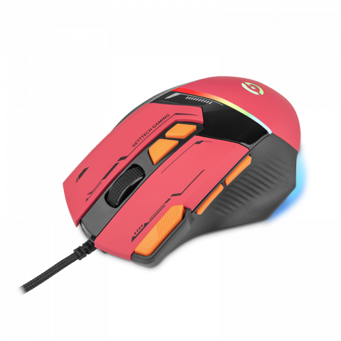 El Mouse Gamer Getttech GPM-RGBWR-G1-RD combina sensor óptico de 7200 DPI, iluminación RGB y diseño ergonómico en un estilo rojo/naranja, ideal para gamers que buscan precisión y personalización.