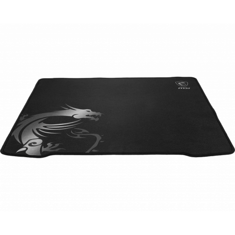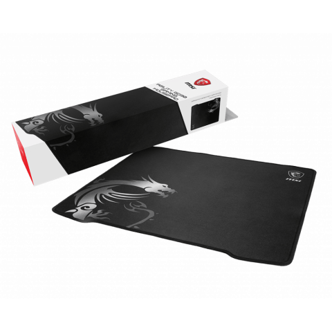 Mousepad MSI AGILITY GD30, superficie de tela sedosa para deslizamiento suave y preciso, base de goma antideslizante, bordes cosidos, dimensiones 450×400×3 mm, diseño en blanco y negro, ideal para gaming profesional.