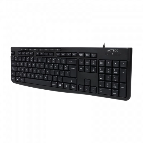 El Acteck Inspire Prime TA222 es un teclado alámbrico de tamaño completo, diseñado para uso cotidiano en oficina y hogar, con conexión USB 2.0 y teclas de membrana.