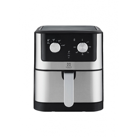 Freidora de aire digital Mirati con capacidad de 6 litros y 1500W de potencia. Permite cocinar de forma más saludable con control de temperatura de 60°C a 200°C.