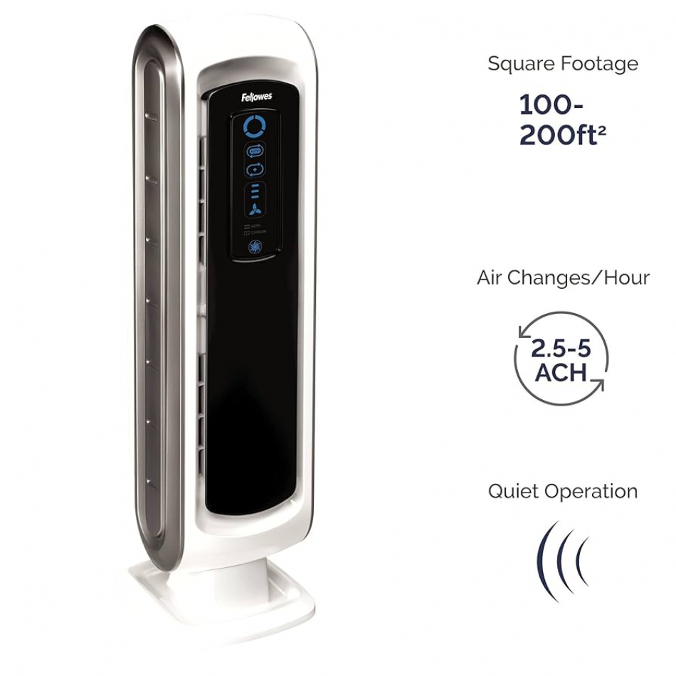 El Fellowes AeraMax 100 es un purificador de aire compacto diseñado para espacios pequeños de hasta 10 m² (90 pies²) . Utiliza un sistema de filtración de cuatro etapas , incluyendo un filtro True HEPA con tratamiento antimicrobiano AeraSafe™ , que elimina el 99.97% de partículas tan pequeñas como 0.03 micrones , como polvo, polen, esporas de moho, humo de tabaco y virus transportados por el aire. Su sensor inteligente AeraSmart™ ajusta automáticamente la velocidad del ventilador según la calidad del aire detectada. Además, cuenta con un filtro de carbono para eliminar olores y partículas grandes. Está certificado por la AAFA como producto amigable para personas con asma y alergias.