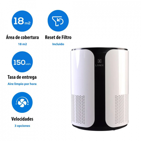 Purificador Lanix XAIR 2 con filtro HEPA, ionizador, Wi-Fi, control por app y asistentes virtuales, cobertura de hasta 18 m², ideal para escritorios y habitaciones pequeñas.