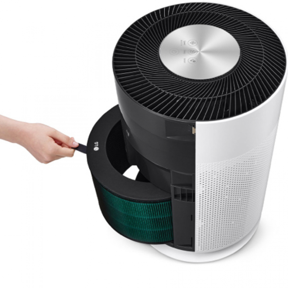 Purificador LG PuriCare 360° HIT con filtro HEPA, sensor PM1.0, conectividad Wi-Fi vía ThinQ, cobertura de hasta 62 m², diseño compacto y silencioso, ideal para mejorar la calidad del aire en interiores.