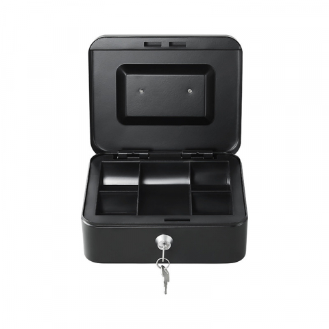 La Qian QOC-143SK es una caja metálica pequeña, segura y portátil, con bandeja removible y cerradura con llave, perfecta para organizar y proteger efectivo en comercios, oficinas o uso personal.