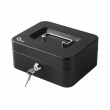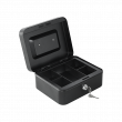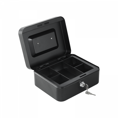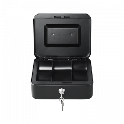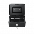La Qian QOC-143SK es una caja de seguridad metálica portátil, diseñada para el manejo de efectivo en entornos comerciales y personales. Fabricada en acero sólido para máxima durabilidad, cuenta con una bandeja removible con 5 compartimentos para organizar monedas y billetes, además de un sistema de cierre con llave que incluye dos llaves para mayor seguridad. Su diseño compacto y asa metálica permiten un transporte sencillo y seguro.
