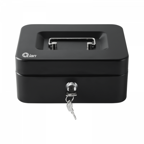 La Qian QOC-143SK es una caja metálica portátil y segura, con bandeja removible y cerradura con llave, perfecta para organizar y proteger efectivo en entornos comerciales o personales donde se requiere movilidad y seguridad.