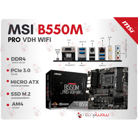 Con una Motherboard MSI B550M PRO-VDH WIFI (PCIe 4.0) y un SSD Kingston NVMe PCIe 4.0 de 1TB , tu sistema volará.
