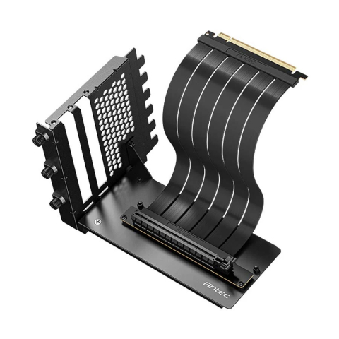 Cable riser Antec PCIe 4.0 de 200 mm para montaje vertical de GPU, compatible con RTX 4090 y RX 7900 XT. Ideal para gabinetes con ventana y builds premium.