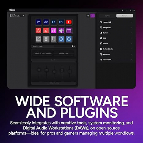 El Cooler Master MasterHUB es un ecosistema modular de control diseñado para ofrecer precisión, flexibilidad y personalización en flujos de trabajo de streaming, gaming, edición y diseño. Basado en la plataforma FreeForm 2.0, permite integrar módulos intercambiables como teclas con pantalla IPS, faders de precisión, perillas y rodillos de desplazamiento, adaptándose a las necesidades de cada usuario. Compatible con aplicaciones como OBS, StreamLAB, Twitch, Photoshop y Premiere Pro, brinda un control intuitivo y una integración fluida con software y dispositivos.