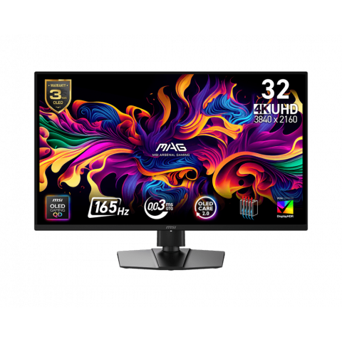 Monitor MSI MAG 322UP QD-OLED E16 32" , 4K UHD, 165 Hz, panel QD-OLED plano, con FreeSync y G-Sync compatible.