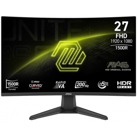 MONITOR GAMER CURVO MSI MAG 276CF E20 DE 27” FULL HD (1920x1080), PANEL VA, FRECUENCIA DE 200HZ, TIEMPO DE RESPUESTA DE 0.5MS GTG, COMPATIBLE CON HDR, ADAPTIVE SYNC, DISEÑO NEGRO CON CURVATURA 1500R PARA GAMING COMPETITIVO