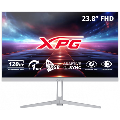 Monitor gamer XPG RIFT R24F2 WHCMX , plano IPS de 23.8", resolución Full HD, 120 Hz, 1 ms, Adaptive Sync, color blanco, peso 4.2 kg.