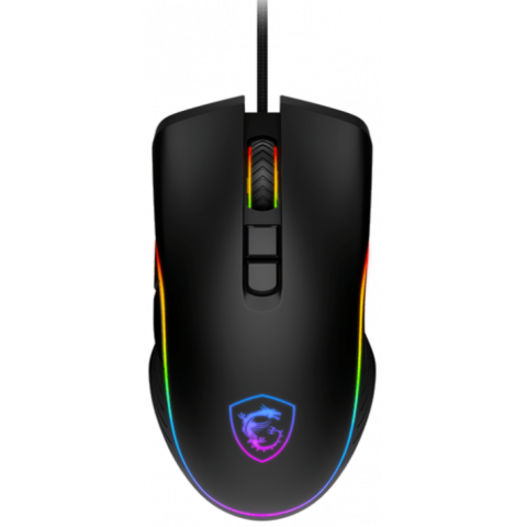 Mouse gamer MSI FORGE GM300, sensor óptico con hasta 7200 DPI, 7 botones programables, diseño ambidiestro, retroiluminación RGB de 5 modos, cable trenzado USB de 1.5 m, compatible con Windows 10 y superiores. Ideal para gaming accesible con estética y precisión.