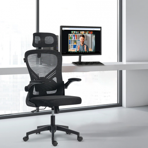 Acteck Flux Base EC343HR AC-943338, silla ergonómica de oficina, respaldo de malla, soporte lumbar y cervical, reposabrazos abatibles, soporta hasta 100 kg.